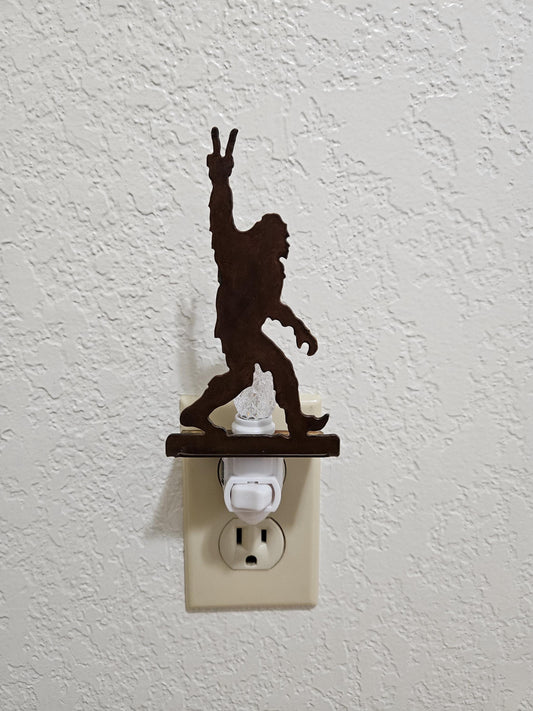 Bigfoot Flashing the Peace Sign as a Night Light- made from smooth, durable rustic steel